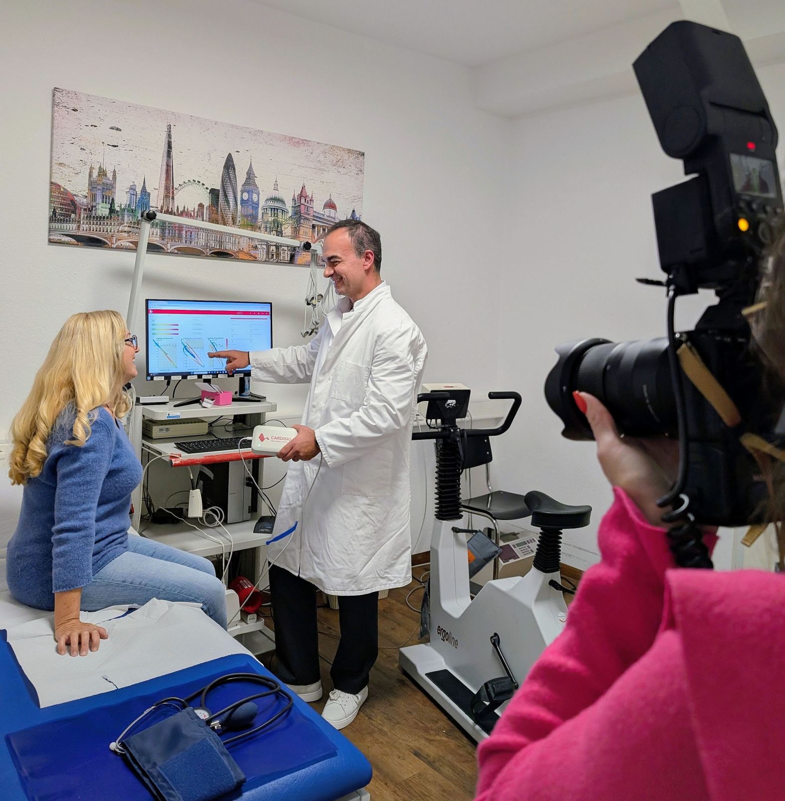 Ihre körperliche Belastbarkeit wurde dennoch nicht wieder besser. Über Google und eine Freundin wurde sie auf Dr. Milan Dinic, Internist, Kardiologe und Experte für Stress- und Sportmedizin sowie TCM, aufmerksam. In seiner Praxis in München führte er eine Cardisiographie bei ihr durch. Bei dem kurzen, präzisen 3D Herz-Check mit KI-Auswertung ergaben sich auffällige Durchblutungsstörungen. Ein Herz-CT bestätigte das Ergebnis.